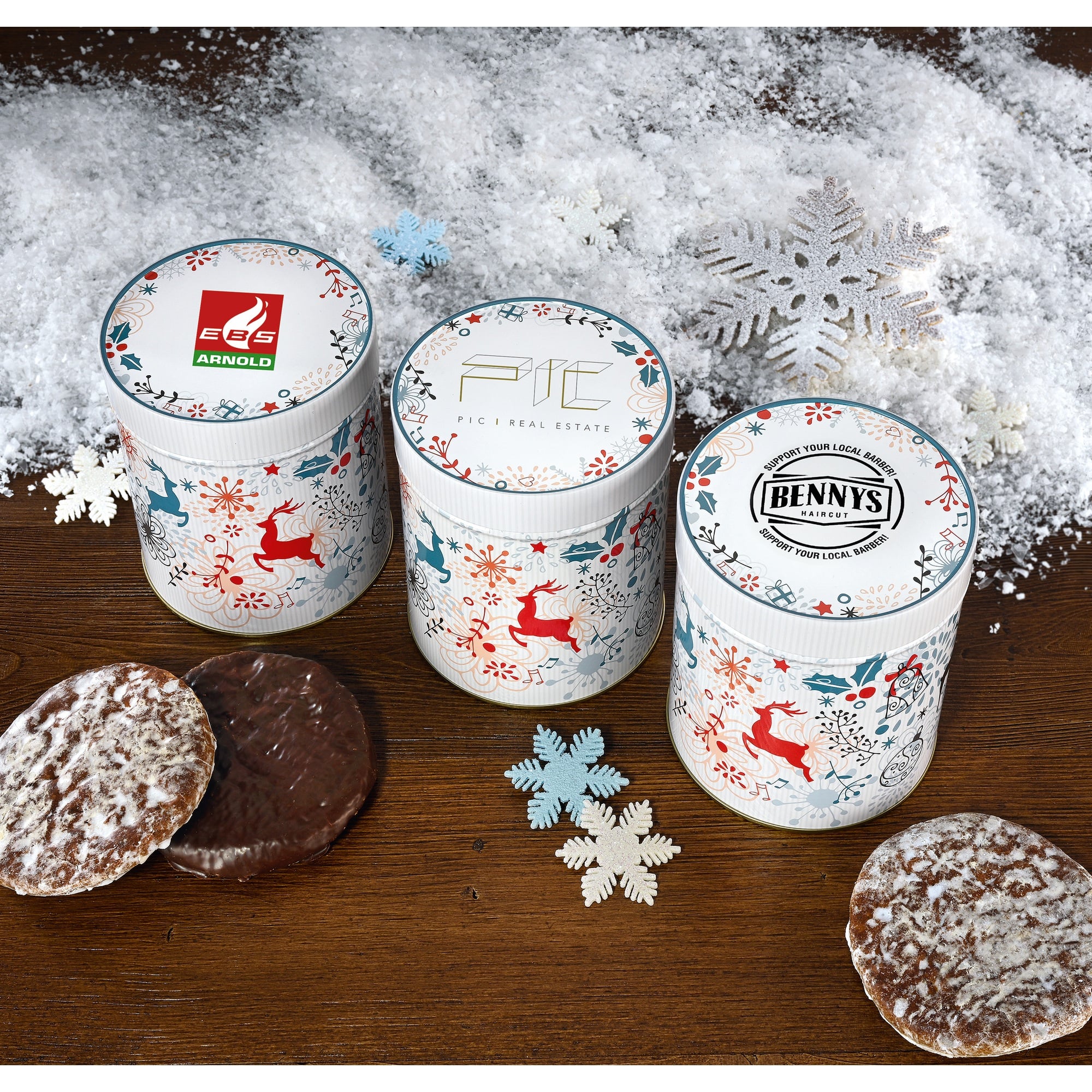 Original gingerbread from Nuremberg in a Christmas gift box with "Reindeer Rudolf" motif - customized with your logo printed directly on the lid.