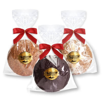 Haselnüsse, Mandeln (mind. 40%), Zucker, Hühnereieiweiß, Marzipan (Mandeln, Zucker, Wasser, Invertzucker), Zitronat/Orangeat (Zitronenschalen , Orangenschalen, Glukose-Fructose-Sirup, Saccharose, Säuerungsmittel: Zitronensäure; Antioxidationsmittel: Schwefeldioxid), Zartbitterkuvertüre: nur bei Schokolebkuchen (Kakaomasse, Zucker, Kakaobutter, Emulgator: Sojalecithin E 322), Bienenhonig, Aprikosenkonfitüre (Glukose-Fructose-Sirup, Aprikosen getrocknet passiert, Zucker, Geliermittel: Pektin; Säuerungsmittel: Zitronensäure), Gewürze, Glukosesirup, Backtriebmittel: Amoniumbicarbonat E 503 (Hirschhornsalz); Salz, Oblate (Kartoffelstärke, Maismehl, Maisquellstärke).