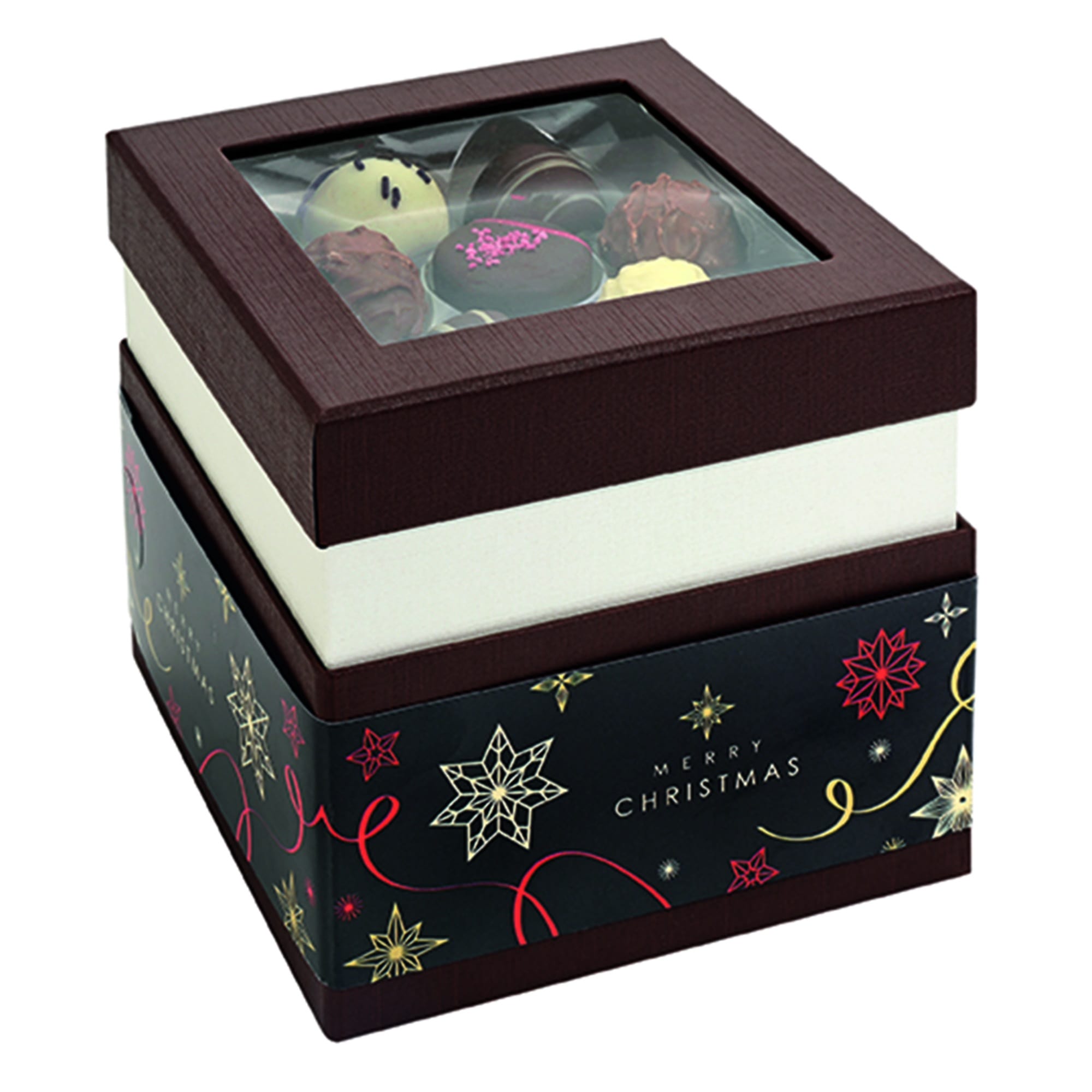 Feine Gourmet Pralinen in einem stilvollen Geschenkkarton. Durch das Auffächern der Etagere ist die Trüffel-Box ideal für jeden Festtagstisch oder zum Präsentieren beim zusammensein an Heiligabend. Beinhaltet ist eine Auswahl verschiedener Geschmackssorten und somit ist für die ganze Familie etwas dabei.