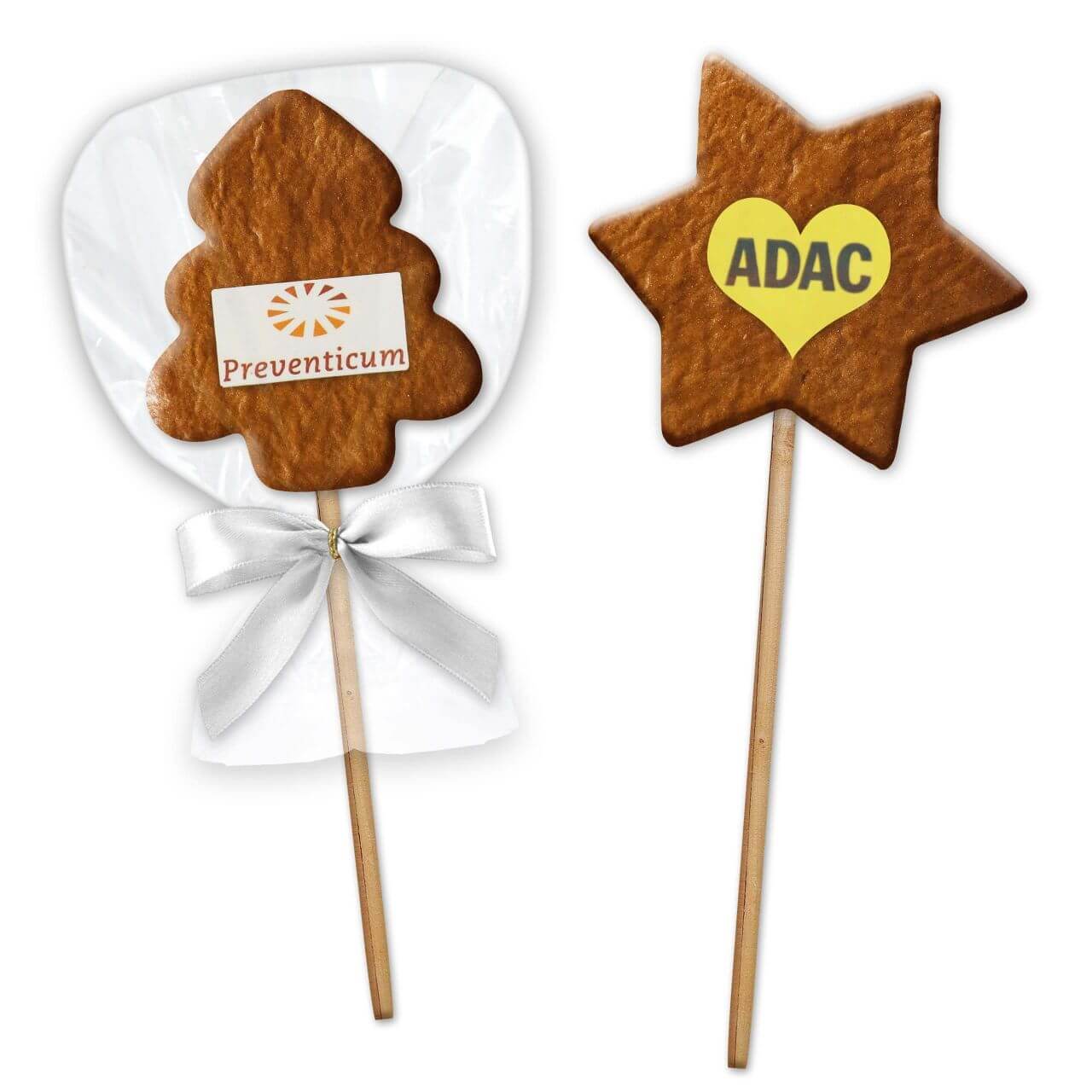 Lebkuchen Stern & Lebkuchen Tanne als Lollis ca. 7cm inkl. essbarem Logo