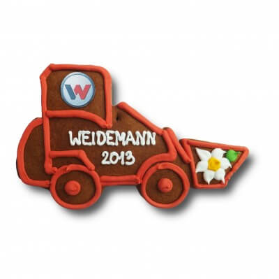 | Beschreibung | Lebkuchen Bagger ca. 24 cm optional mit Logo Individualisierung: