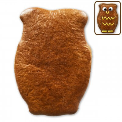 Die Eule aus Lebkuchen kommt blank und ofenfrisch bei Ihnen an. Sie dürfen sie zu Hause nach Lust und Laune gestalten. Das benötigte Zubehör, wie Zuckerguss und Spritztüllen finden Sie online bei uns im Shop.