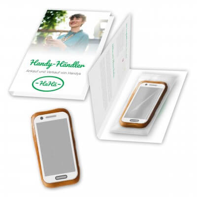 Lebkuchen Smartphone mit Werbe-Aufleger & bedrucktem Falt-Flyer