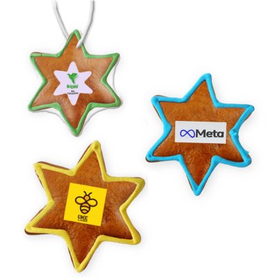 Pünktlich zu Heiligabend bieten wir unsere festlichen Lebkuchen jetzt auch in Form von Weihnachtssternen an. Die Lebkuchensterne können nach Wunsch mit einem farbigen Linienrand und einem Firmenlogo auf essbarem Zuckerpapier personalisiert werden. Dadurch werden die Sterne zum perfekten Weihnachtsgeschenk oder Giveaway für Kunden, Gäste und Geschäftspartner.