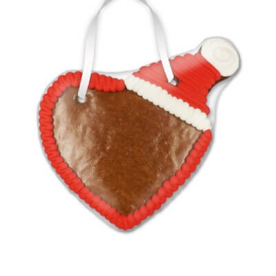 Der weihnachtliche Rohling für die Adventszeit. Unser Lebkuchenherz trägt zu Weihnachten eine passende Mütze. Diese und den dazugehörigen Rand aus Zuckerguss haben wir schon mal für Sie vorbereitet! Zusätzlich kann er von Ihnen noch mit hübschen Deko-Elemtnten verziert und mit Zuckerguss beschriftet werden.
