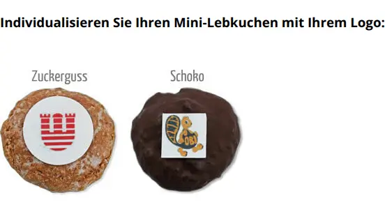 | Beschreibung | Werbegeschenk Mini-Lebkuchen mit Logo, ca. 4cm Durchmesser, Individualisierung: Logo auf essbarem Zuckerpapier gedruckt (max. 20mm x 20mm). |